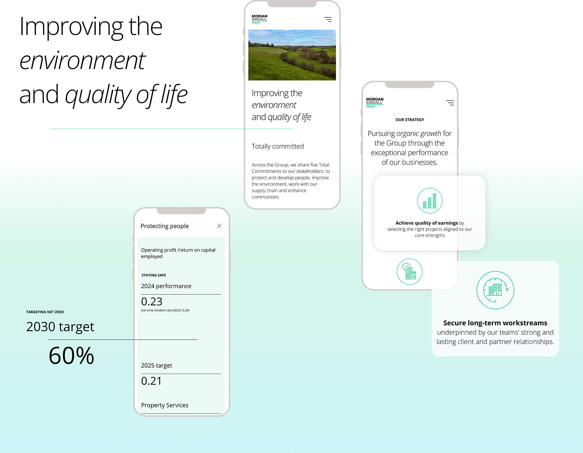 Morgan Sindall Group is one of the three largest UK construction groups specialising in housing, fit-out, and construction. We were tasked with designing and developing a new, fresh online presence that serves a wide range of audiences, from investors to talent recruitment, with information about the group's areas of expertise and business model.